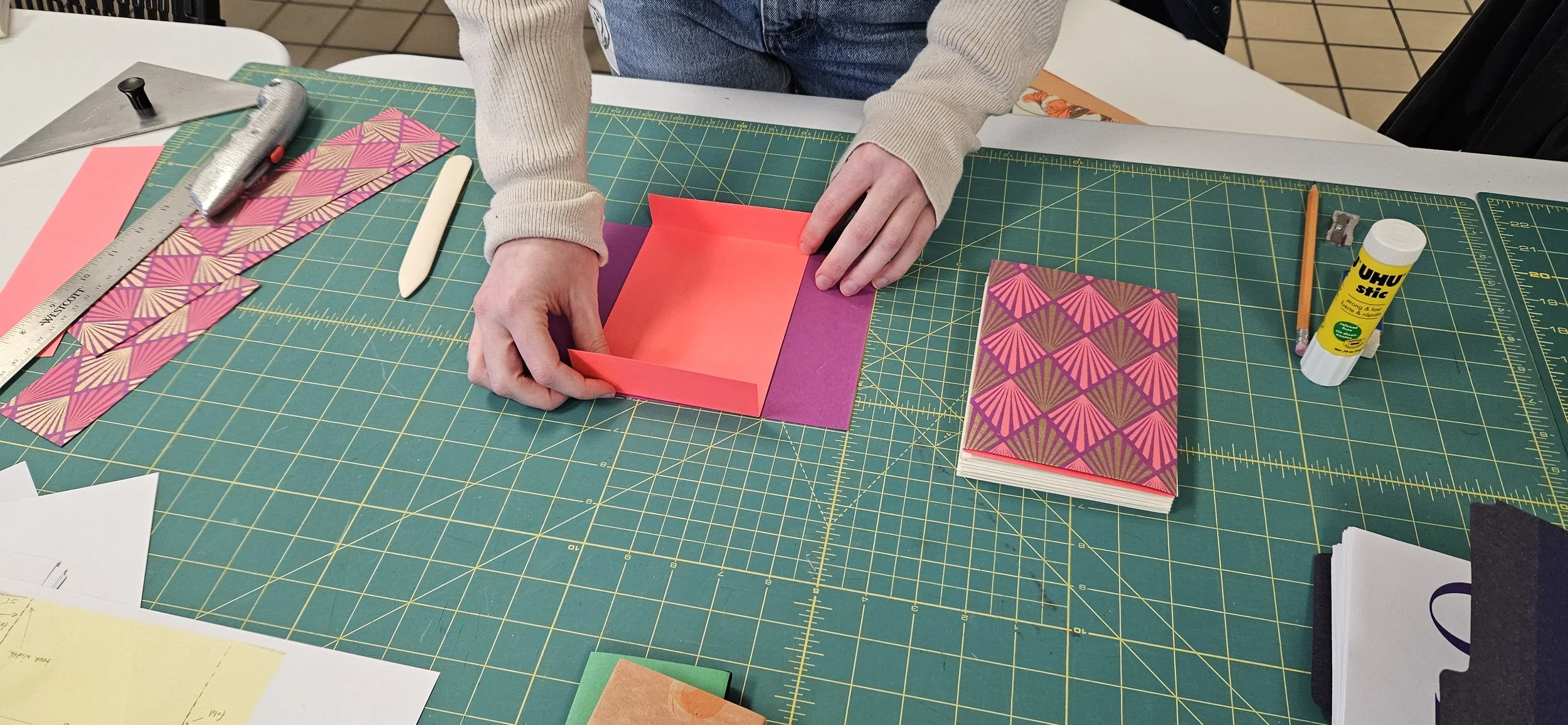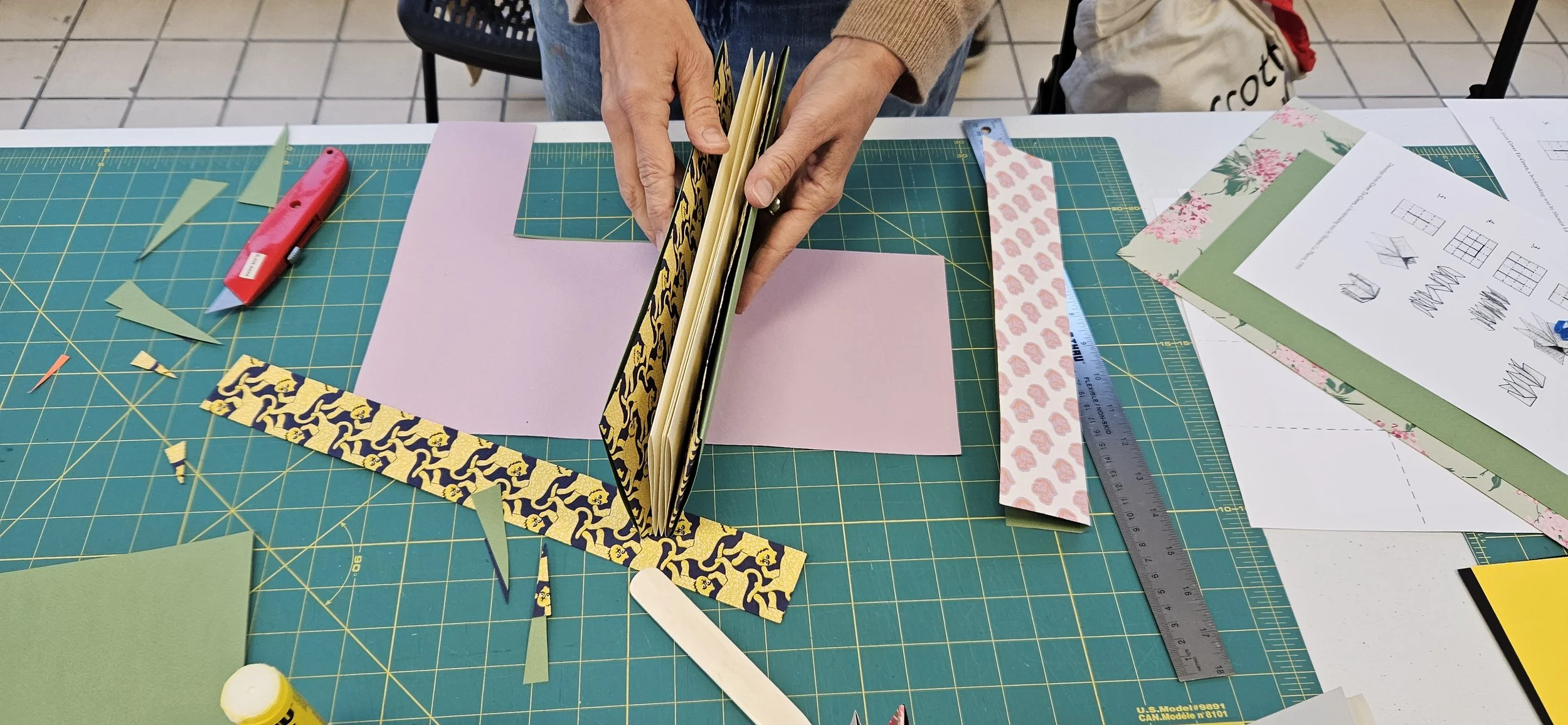 Making Soft Cover Journals and Artist Books in a workshop at the Textile Arts Center, Madison, Wisconsin Spring 2025